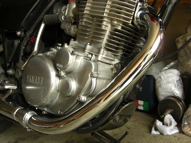 右斜め後ろより、エキパイからサイレンサーまでの形。