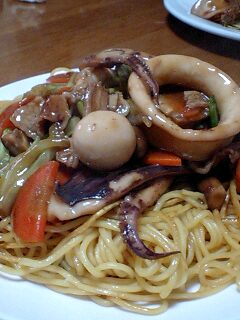 ・イカ(冷凍スルメイカ)一杯 ・人参1/3本 ・キャベツ適量 ・しいたけ