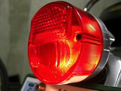 CEVのテールレンズは、内側に1箇所ひびが入ってるけど気にならない程度。久々にキーをONにして、点灯させる時ドキドキした。やっぱこのぼやっとした感じ、好きだ。いいね~。